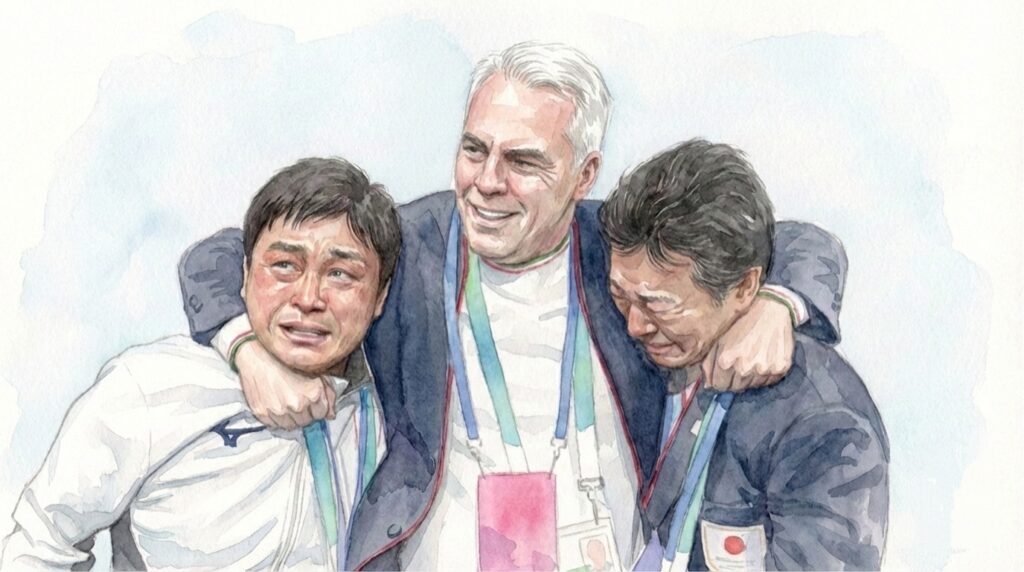 頭を撫でる三浦選手の「マリア像」のような母性と、感情を爆発させて泣きじゃくる木原選手の純粋な「男泣き」。このコントラストは、まるで映画のラストシーンのように完璧で、世界中を温かい涙の渦に巻き込んだのです。