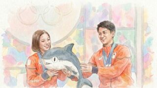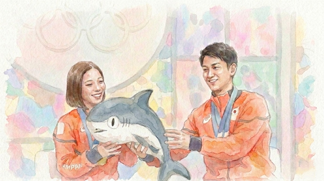 実はこのサメネコ、日本のスポーツ界でも思わぬ形で大旋風を巻き起こしました。記憶に新しい2026年ミラノ・コルティナ五輪で、フィギュアスケート・ペアで見事金メダルを獲得した「りくりゅう」ペア(三浦璃来選手・木原龍一選手)が、ファンからプレゼントされたサメネコのぬいぐるみを「シャー子」と名付けて大会に持ち込んでいたのです!大舞台の裏で彼らを支えた癒やしのエピソードについては、ぜひこちらの記事をチェックしてみてください。 👉 [【りくりゅう】愛用のぬいぐるみ「シャー子」の正体!?話題の相棒「サメネコ」をご紹介]